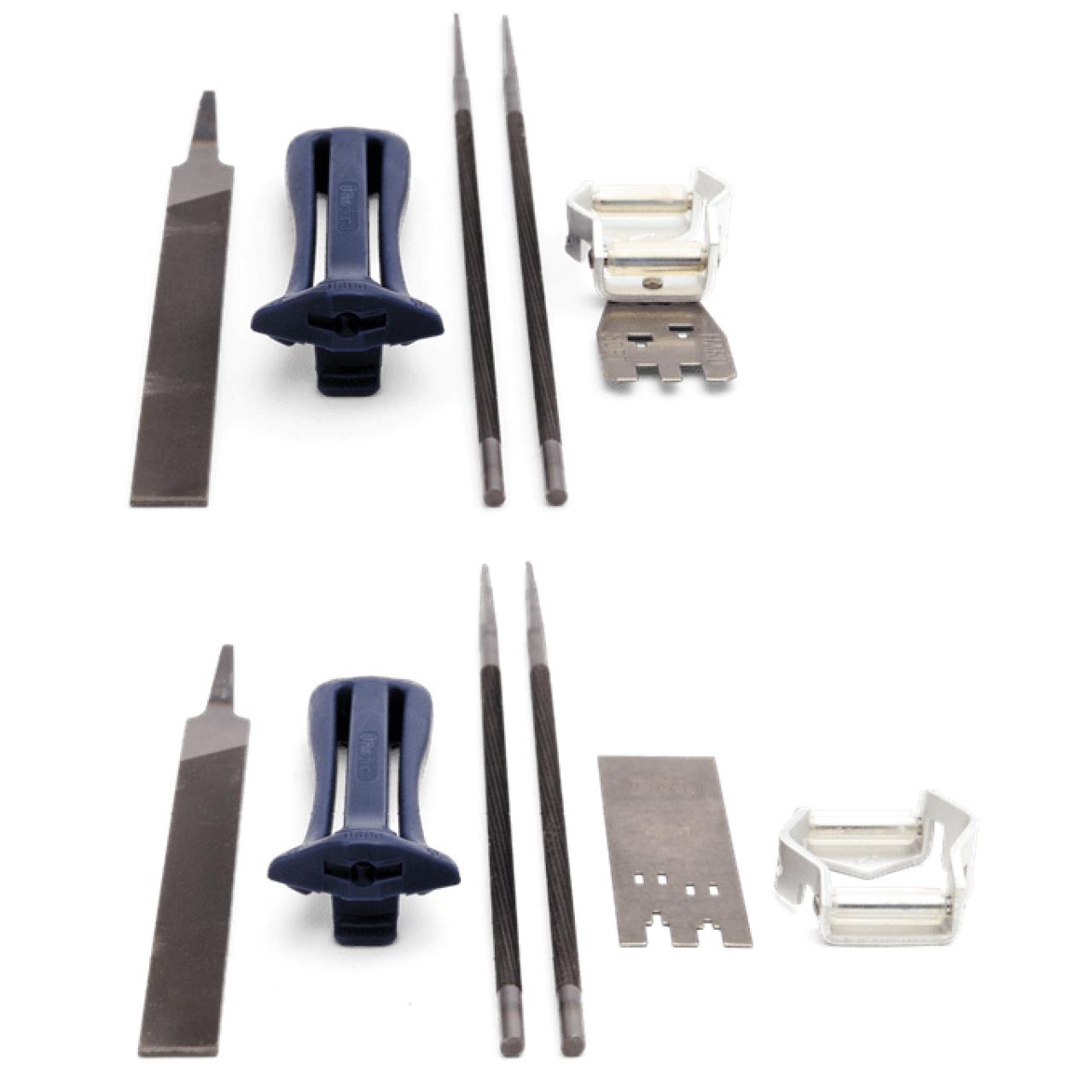 Komplettes Kit, das Ihnen hilft Ihre Kette immer in Form zu halten. Bestehend aus Feilengriffen, Kombilehre, 2 Rundfeilen und 1 Flachfeile. Es ermöglicht Ihnen ein einfacheres Arbeiten durch den richtigen Feilwinkel.